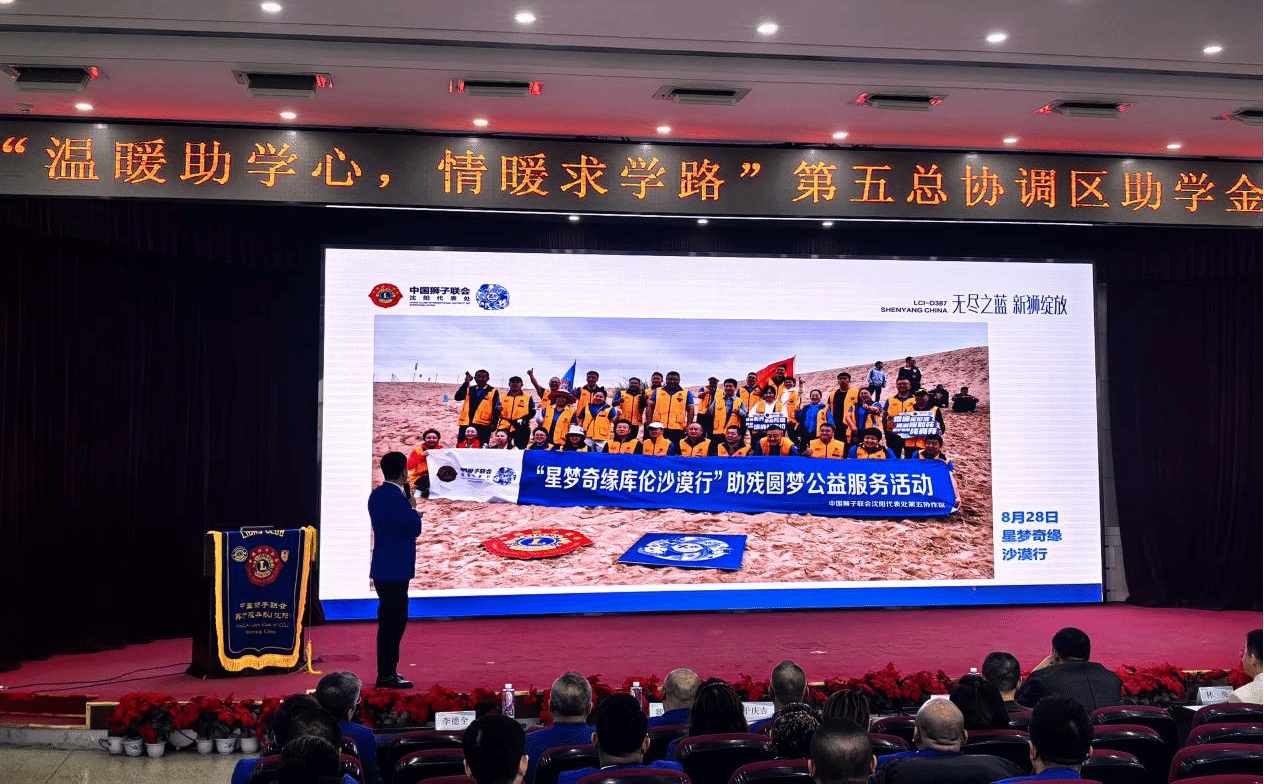 会前,现场滚动播放英才服务队随康复学院一同家访的视频、康复学院志愿者活动纪实及“星梦奇缘库伦沙漠行”大型联合公益服务展示片,生动呈现了中国狮子联会深耕公益、践行社会责任的实践成果,也传递出学院与公益力量携手育人的暖心氛围。